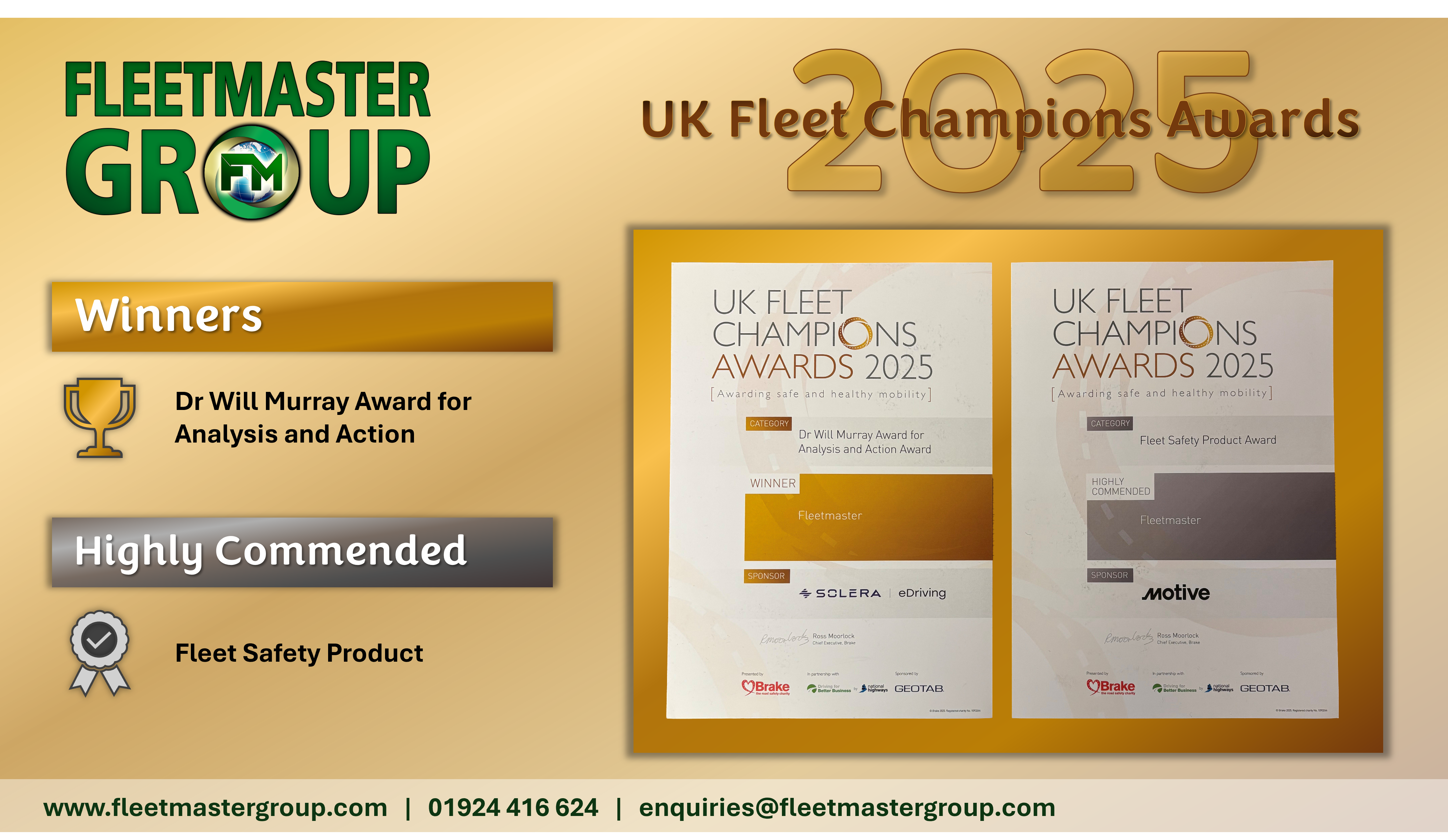 Success for Fleetmaster as we win the Dr Will Murray Award for Analysis and Action for the third year in a row at the UK Fleet Champions Awards 2025!